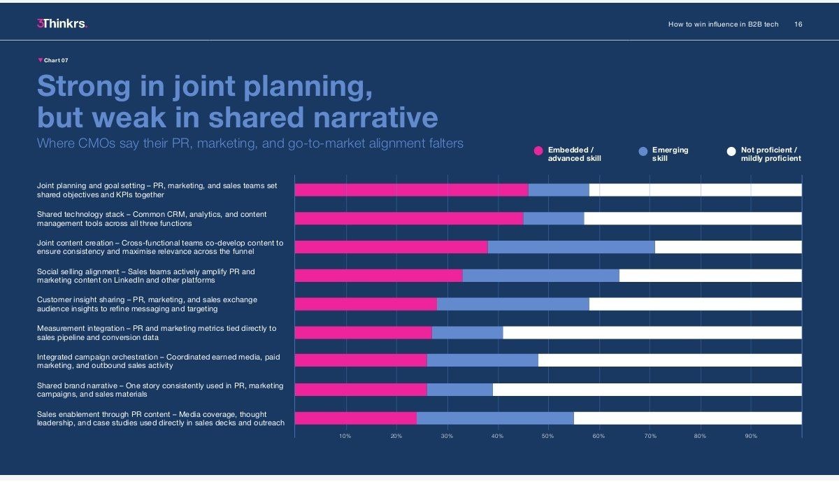 Навык: Создание и железобетонное поддержание единой истории бренда (storytelling), которую одинаково доносят PR, маркетинг и отдел продаж. Исследование показывает, что самые запоминающиеся структуры — это двухчастные контрасты (problem/solution) и «правило трех».